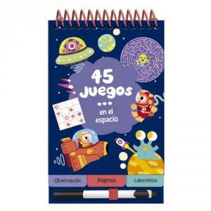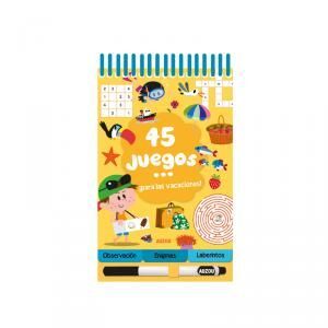 45 juegos es una nueva colección de libro-juegos en un práctico formato pequeño con un rotulador borrable ¡para divertirse por todas partes y todo el tiempo! 45 juegos alrededor de un momento o situación (de vacaciones, de viaje, mientras esperas
